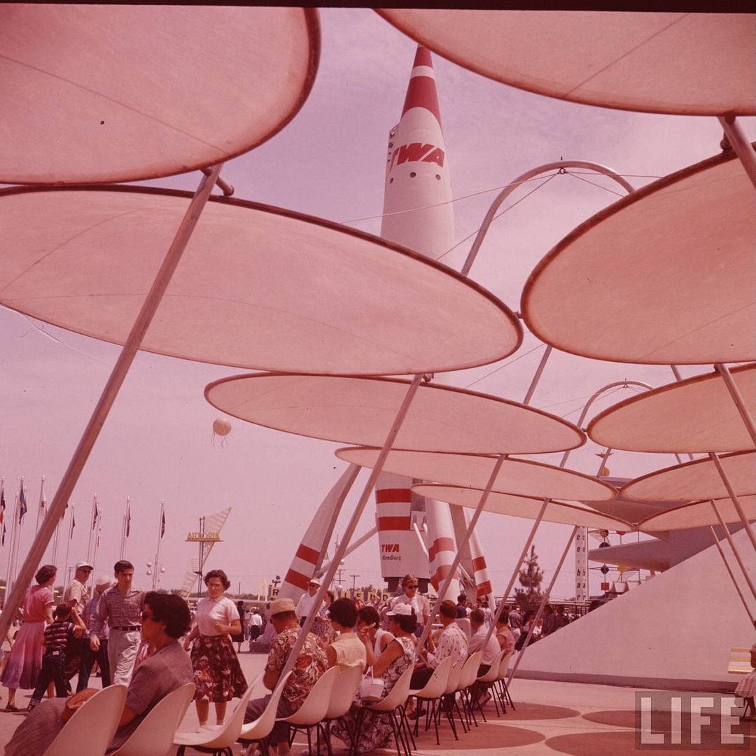At the other end of Tomorrowland guests were amazed by the TWA rocket and also could enter the Space Station X-1 and Rocket to the Moon attractions. They also could sit in the shadow under these typically 1950's structures.
