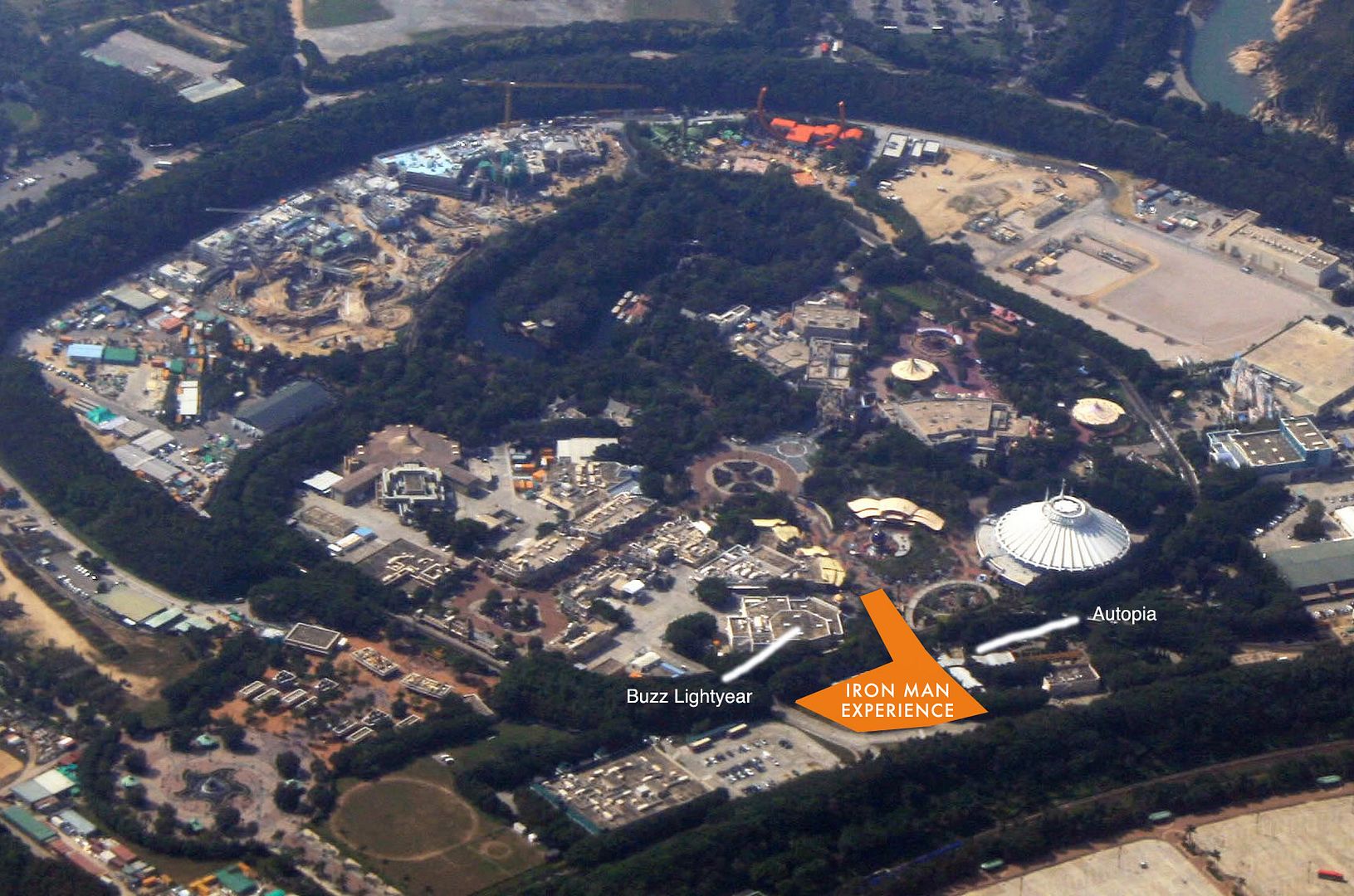 The big news yesterday was of course the announcement of the Iron Man Experience coming to HKDL Tomorrowland in 2016, but where "exactly" will it be located? Well, in my yesterday's post you saw an aerial picture showing you where the show building will be built and the location was right but today i can give you a more precise location.