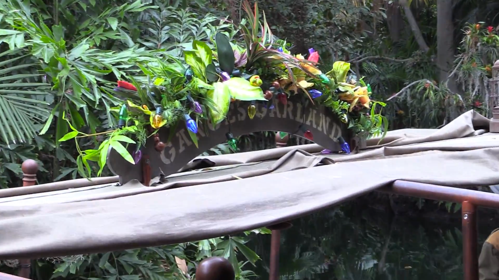 Garlands and Christmas decorations are now on the Jungle Cruise boats.