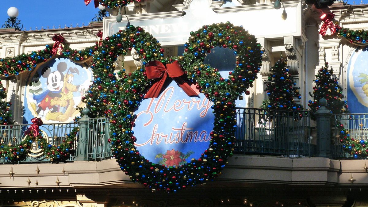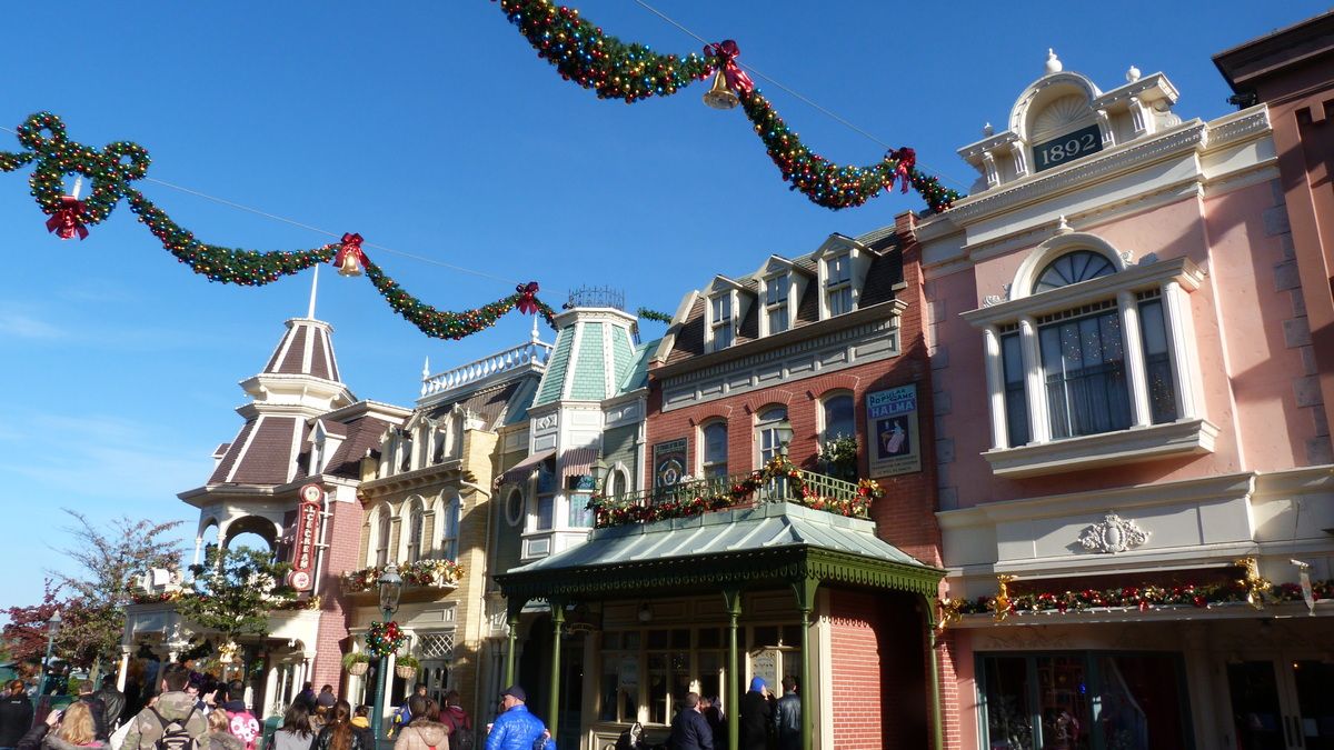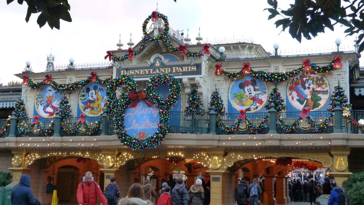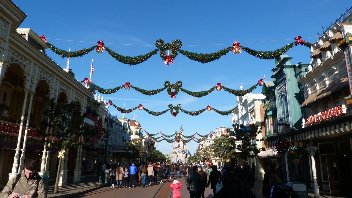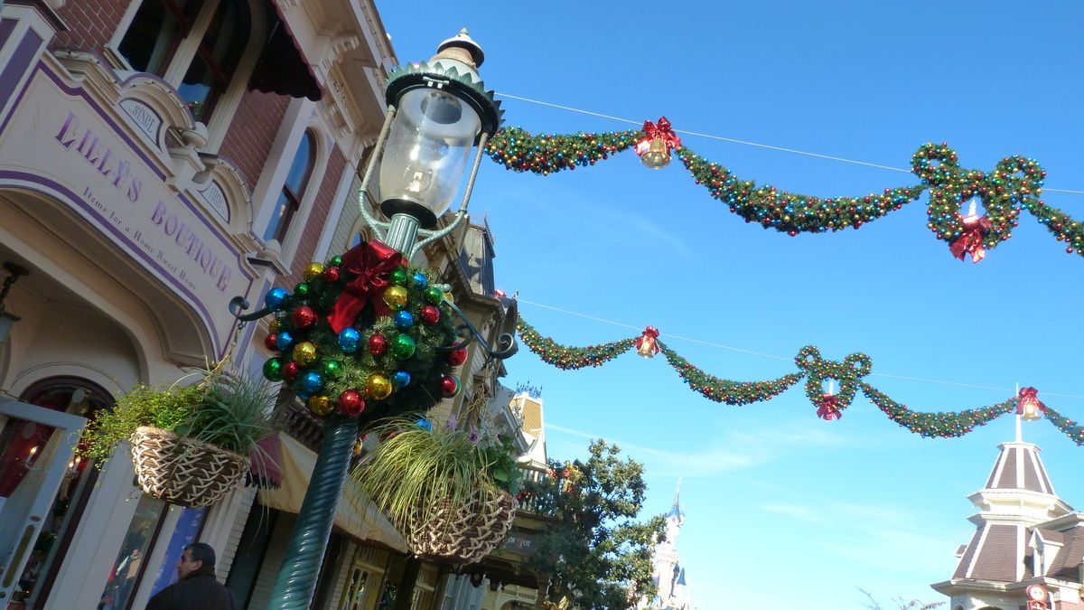 There we go, starting by the park entrance where Christmas decorations are in place everywhere whether it is on DLP train station or Town Square or Main Street U.S.A.