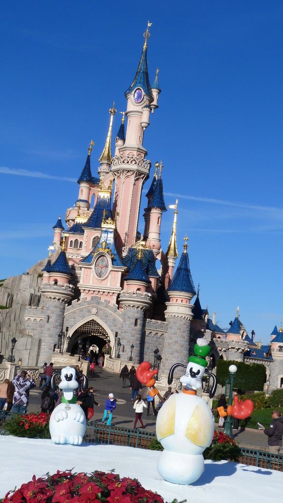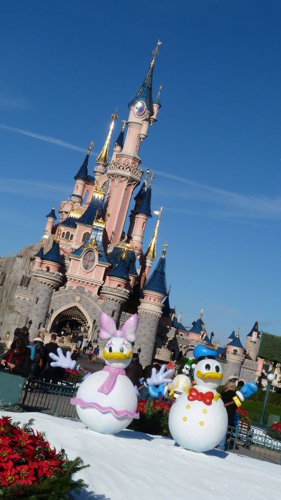 The characters snow-men in front of Sleeping Beauty Castle on Central Plaza are back this year!