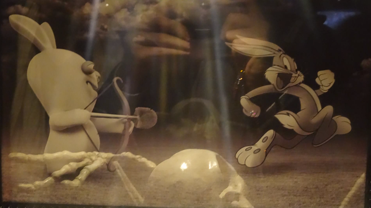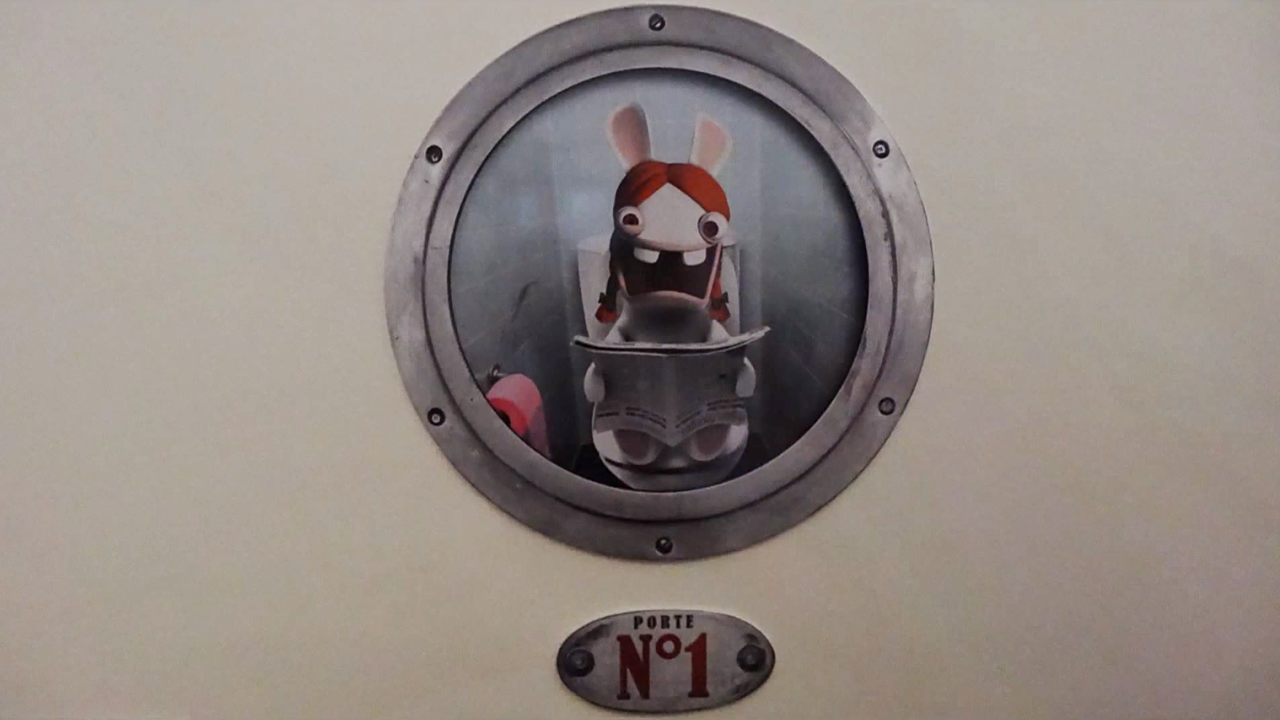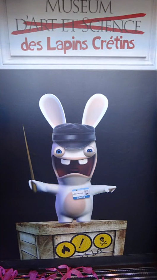 When guests go inside there is a pre-show called "Museum des Lapins Crétins" (Raving Rabbids Museum)...