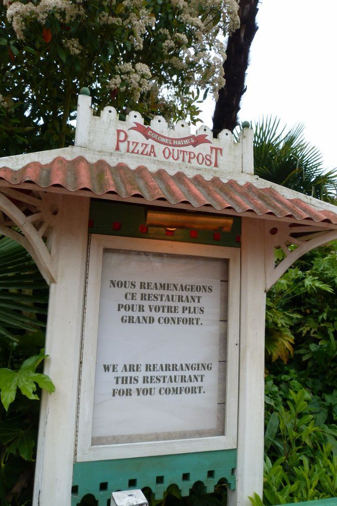 In Adventureland, the Colonel Hathi's Pizza Outpost is currently closed for refurbishment...