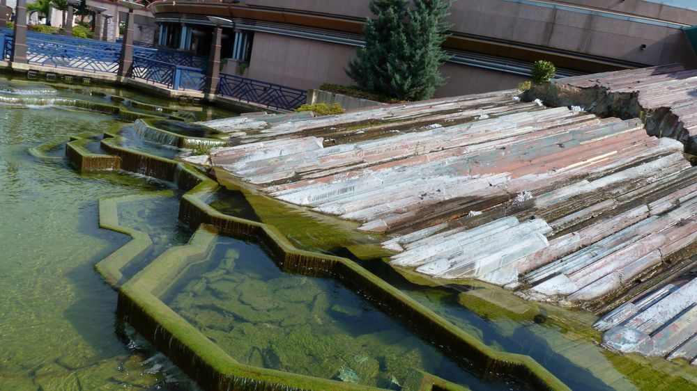 Unfortunately the heat is also responsible of the appearance of moss in the water and the state of the fake rocks at the land entrance is getting worse, too.