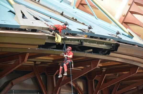 Some problem happened a few weeks ago on Space Mountain and on July 6 a part of the exterior structure was removed. Apparently it hasn't been that easy and they had to literally "cut" the part of it which had the problem. ( pictures from DisneylandParisFans and InsideDLParis )