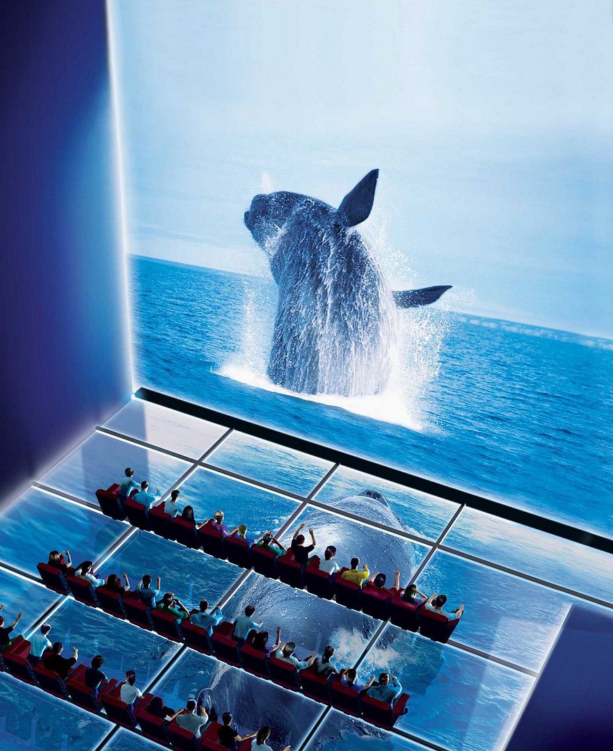 The Magic Carpet attraction "will be transformed in a new major thrill ride" and they have plenty of room in this one to create something great. So far the “magic carpet” pavilion was inviting its audience on a poetic and ecological odyssey that couldn't be seen anywhere in the world but at the Futuroscope, in a theatre that boasts the Double Imax format. In the upper area, nearly 250 seats in tiered rows face a giant 672 m2 screen. In the lower area, a second inclined screen, 748 m2 large, stretches out beneath the spectators' feet. Two films were projected simultaneously from two projection rooms equipped with IMAX technology, one in front and one underfoot, that let the audience fly with the birds above the whales and dolphins.