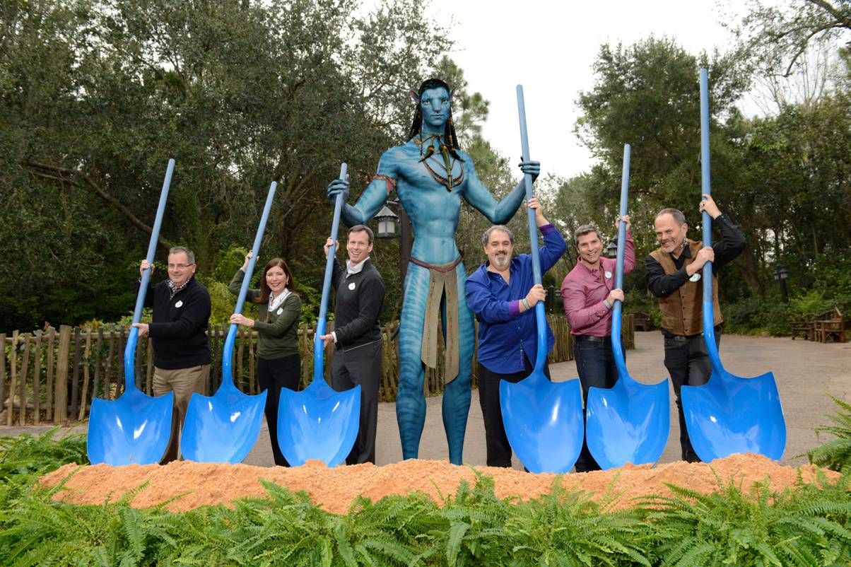 A ceremonial groundbreaking happened earlier this week at Disney's Animal Kingdom with Tom Staggs, Joe Rhode, Avatar Land Imagineers, and even the little help of a Na'vi! So, the construction begins now and "the area, which is being designed by Walt Disney Imagineering in partnership with “AVATAR” creator James Cameron and Lightstorm Entertainment, will be unlike anything ever experienced at a Disney park. Guests will experience the wonders of Pandora when they fly with banshees and explore a rich natural environment with mountains that float and interactive plants that glow at night".