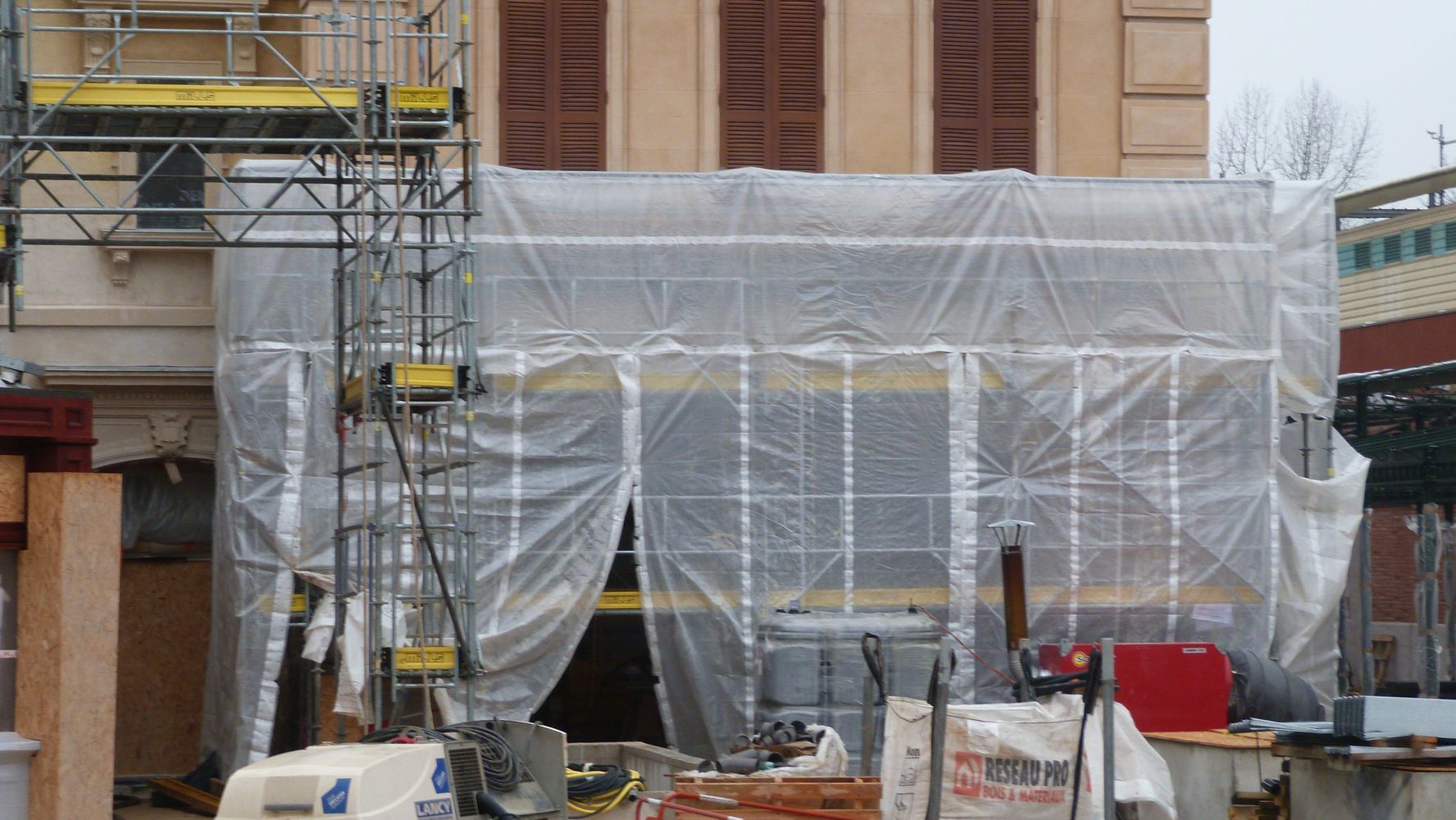 We're back to Disneyland Paris today for a short update to have a look at the works on the WDS Ratatouille construction site. Most of the work is now happening inside the buildings, so hidden for any camera but there is still some works happening outside like the start of the construction of the fountain which will be at the center of the plaza, so let's have a look at all this with pictures shot this week-end by Max Fan, D&M contributor and DLPWelcome webmaster.