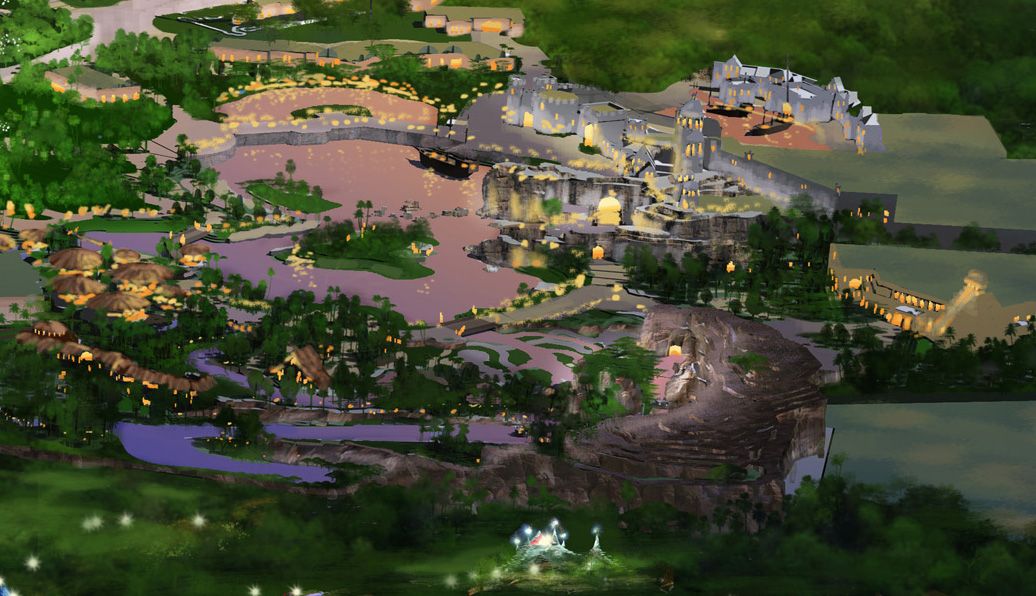 Hotel layout looks very similar to the Animal Kingdom Lodge. I wonder if it is Africa/Jungle themed, but without the animals.