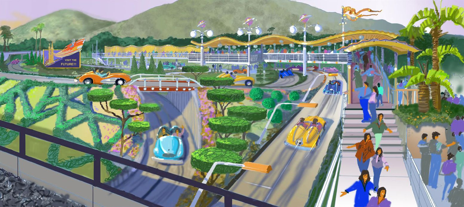 T.D: We are currently designing and actually we are under construction for one more major attraction and two more minor attractions that will open in July of next year. We’ll have a totally unique and different Autopia than the one you have in Paris. We’ll have electric cars, with lighting effects on the cars, a different kind of unique on-board audio-system, and the landscape that you will go through is much more like an alien landscape, another planet kind of landscape... It will really be a fun drive, and actually we’ll also have one of the roadways who comes into the land , because most of the Autopia will be beyond the railroad, so part of the road will come into the land on an elevated highway and returns back down to the location of the attraction, so it really showcases the ride to the people in the land. And people will be able to walk underneath this elevated roadway that you see the cars are going by.