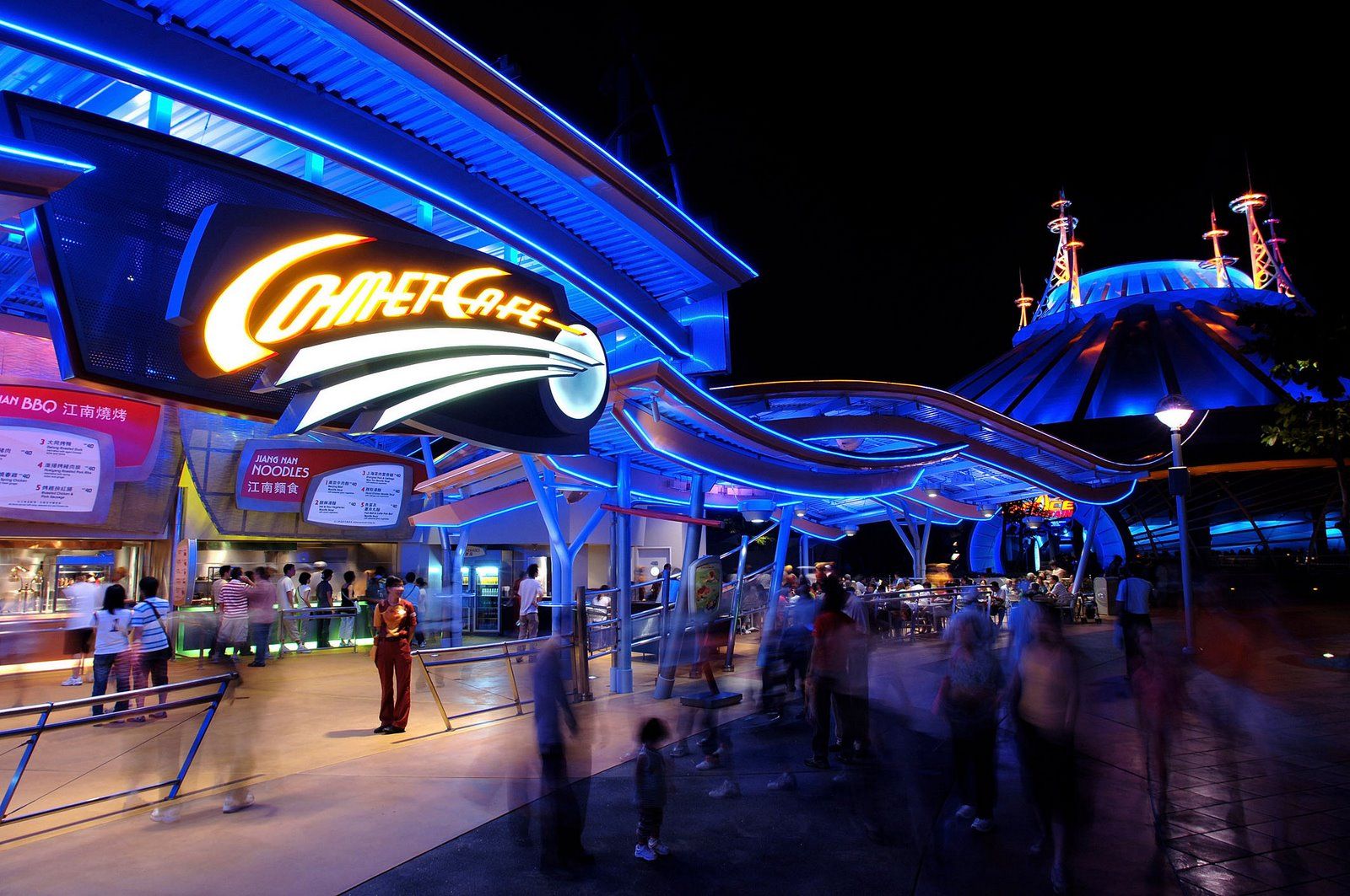 T.D: The other restaurant of Tomorrowland is the Comet Cafe, and is also located close to the Orbitron.