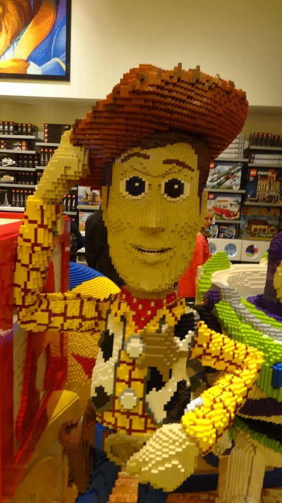 The store include many LEGO statues of different characters, whether from Disney or Pixar movies or even Star Wars with R2D2.