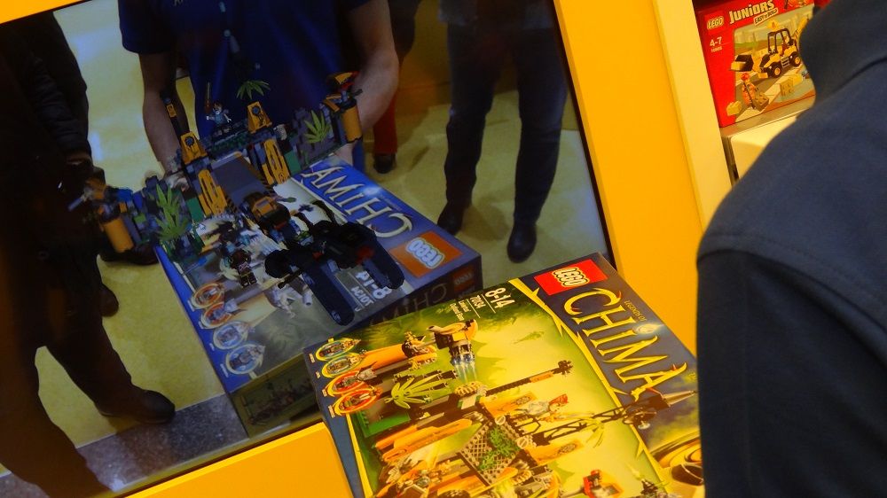 ... and nearby an augmented reality screen allows to see - when you put the box in front of it - how will look the toy once built - good idea!