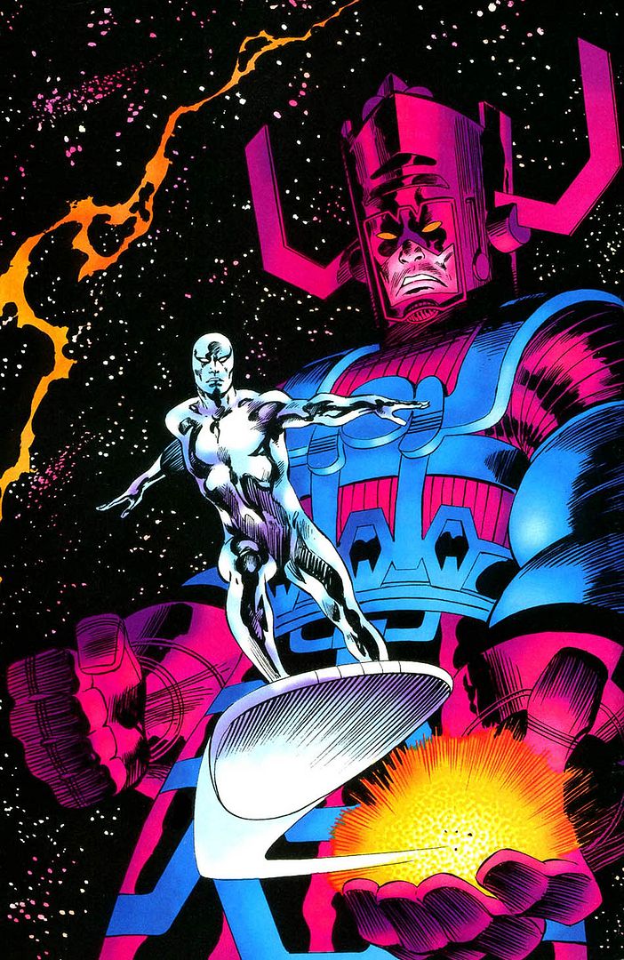 Although the two styles are totally different, i can't resist to post another great Silver Surfer artwork from John "Big" Buscema, for me the one who drew the best Silver Surfer, here with Galactus.