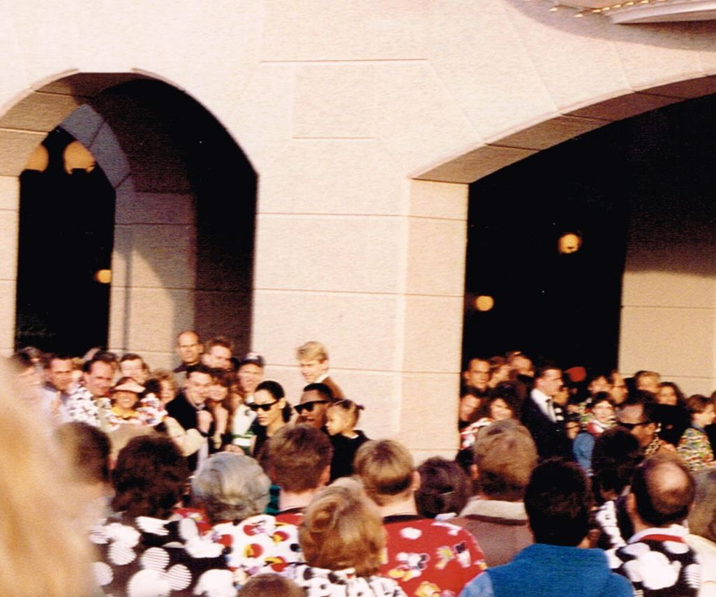 Jeffrey Katzenberg, then head of Walt Disney Studios, riding on many big successes, now the head of his own studio. I would later that night, casually find myself standing next it him at the top of Main Street near the hub, along with his powerful friend Barry Diller. Chocolate truffles we're being passed between us by gloved staff on silver trays, as we all watched fireworks explode across the hub over the castle, and then suddenly erupt from several buildings surrounding us. It was the first time Disney had done fireworks in the round! And it brought an impressed gasp from quite a glam crowd. It moved me to tears literally, just standing there. It was a dream come true, done so very well in every detail.