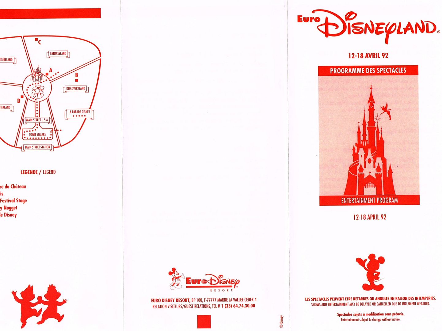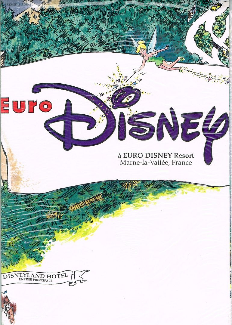 Here is some fun stuff from EuroDisney's opening. On the top, the back of the very early brochure. Below: I made sure to collect several opening guides, in all the languages!