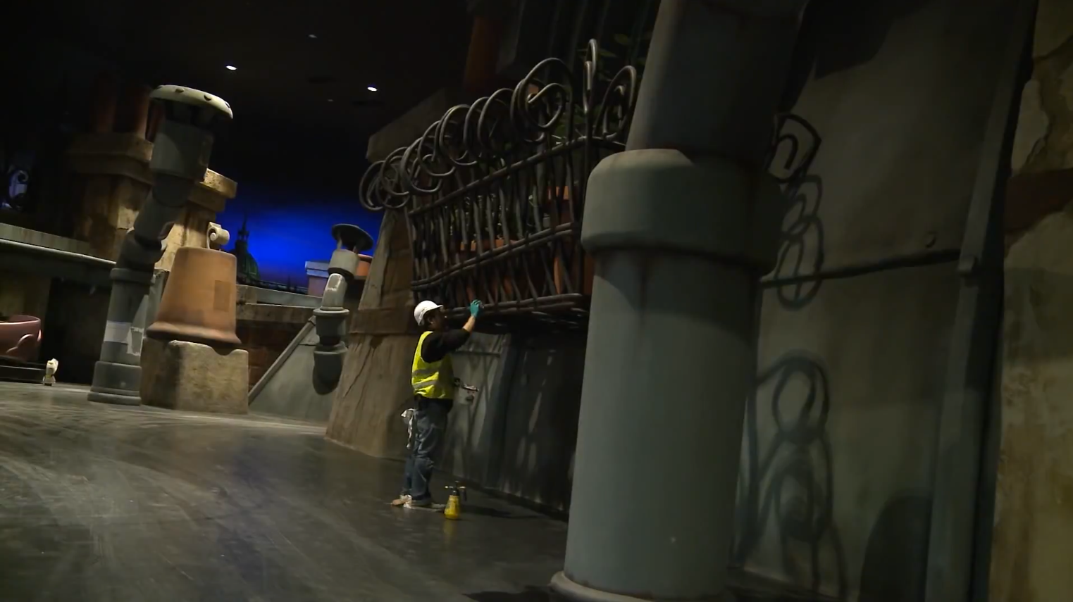 On most of the shots of the video you'll see Imagineers, painters, sculptors... giving the final touch on each set and i did HD screen captures of the most interesting shots for you. Click on each to see them in big size!