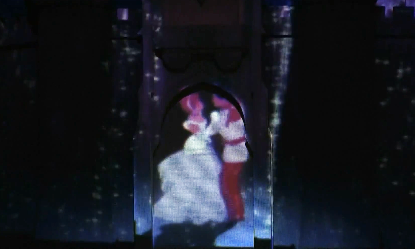 We then can see Cinderella and her Prince dancing at the entrance of the castle while this one transforms in a magical waterfall...