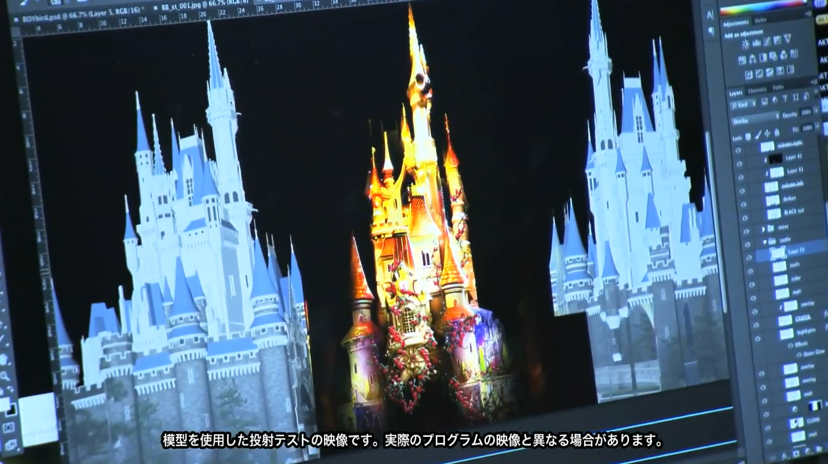 The video also shows WDI Imagineers creating the visuals for the projection on TDL castle.