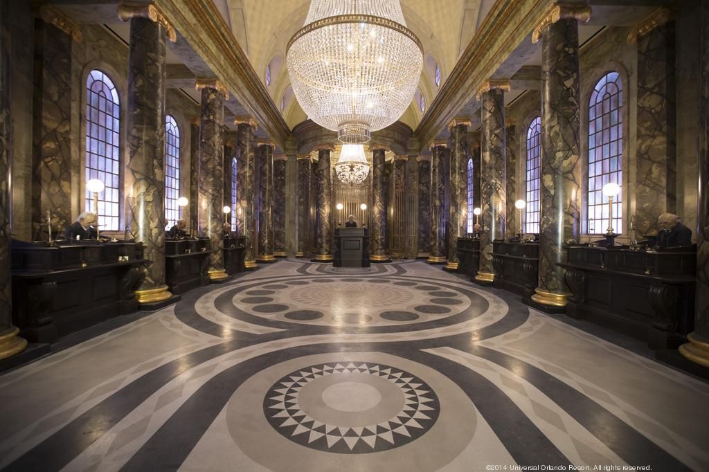 Before they arrive to the boarding room guests will have been through Gringotts bank - the goblin-owned bank for wizards, discover its vaults and the famous marble lobby with Goblins Audio-Animatronics who apparently will interact with guests to propose to open an account at the bank...