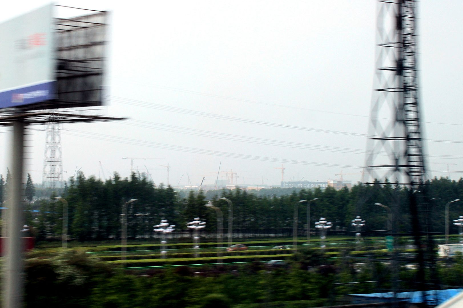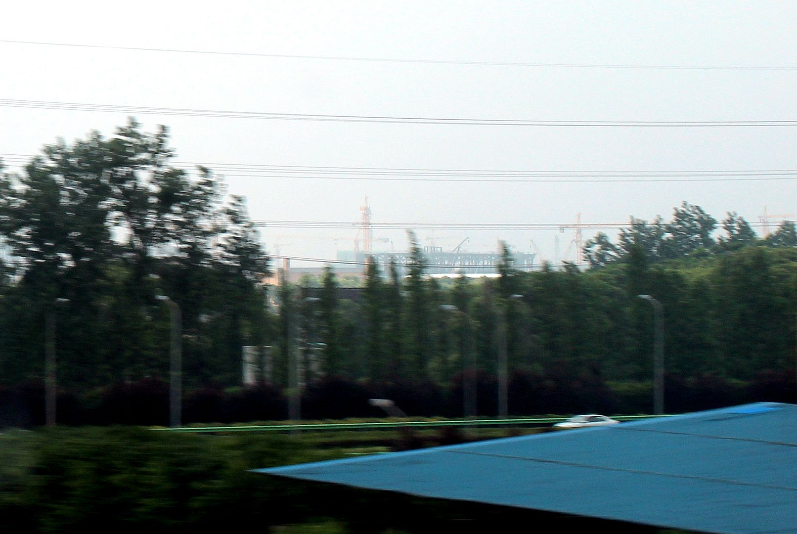I have to thanks a lot Daniel, a faithful D&M reader, who sent me the link of the video. But Daniel also just returned from a trip to China and was in Shanghai on June 1st. He rode the Maglev train that runs north of the Shanghaî Disneyland Resort and captured these pictures which turned out decent for going at 270 mph. He could see a lot of tower cranes over the site and the castle is beginning to rise as you'll see in the pictures. He also could see the Tron coaster which is now fully covered. He even could see the track inside, but none of the pictures he got captured it, probably because he was too far and the Maglev train was going too fast.