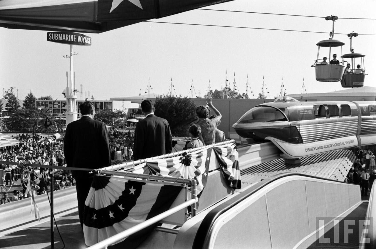 Just a quick correction...When the Disneyland Monorail opened, it only operated around Tomorrowland. The track wasn't extended to the Disneyland Hotel until 1961.