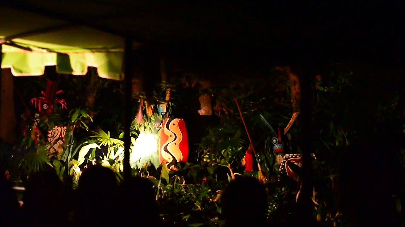 Departure with a Jungle Cruise skipper in a forest illuminated by hundred of lights...