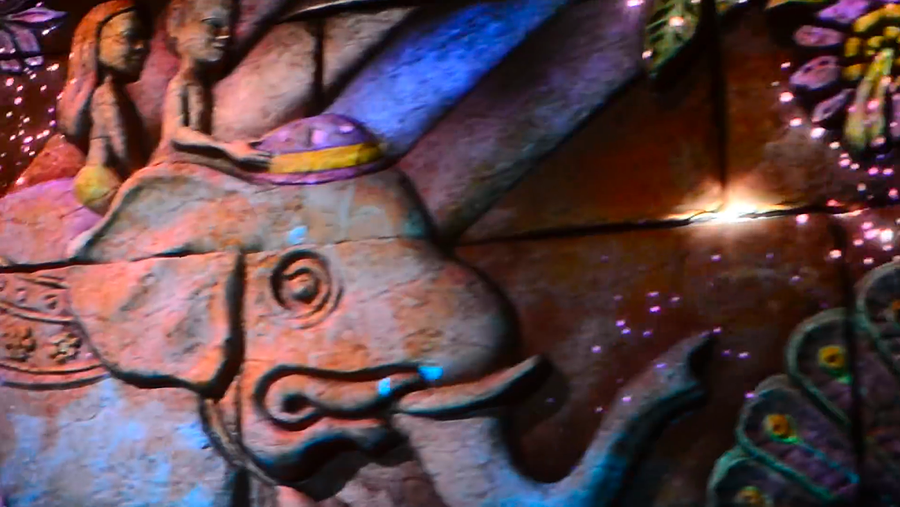 This is the not-to-be-missed scene in the video as it's where new visual effects awaits you as suddenly, in an explosion of lights, the murals are magically transformed by probably projection effects. I predict that U.S fans will be jealous of that scene! May be it will come to DL and WDW Jungle Cruise versions...