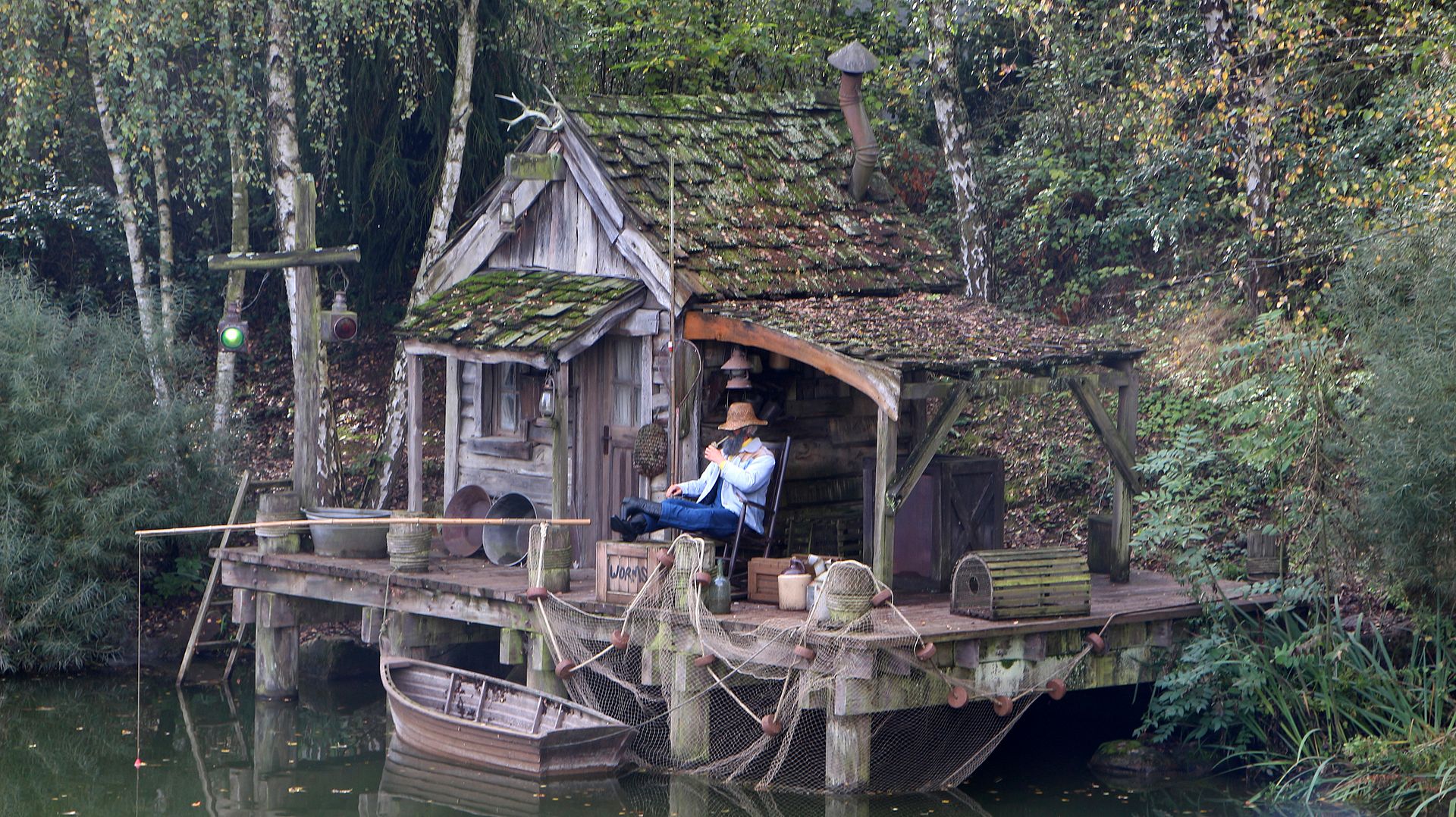 The fisherman was hidden some days ago under a canvas but DLP guests can clearly see him now, though the AA dog normally on the left is still missing. That said, the small building itself needs some refurbishment if they don't want to find it one day in the same bad condition as the Mark Twain is...