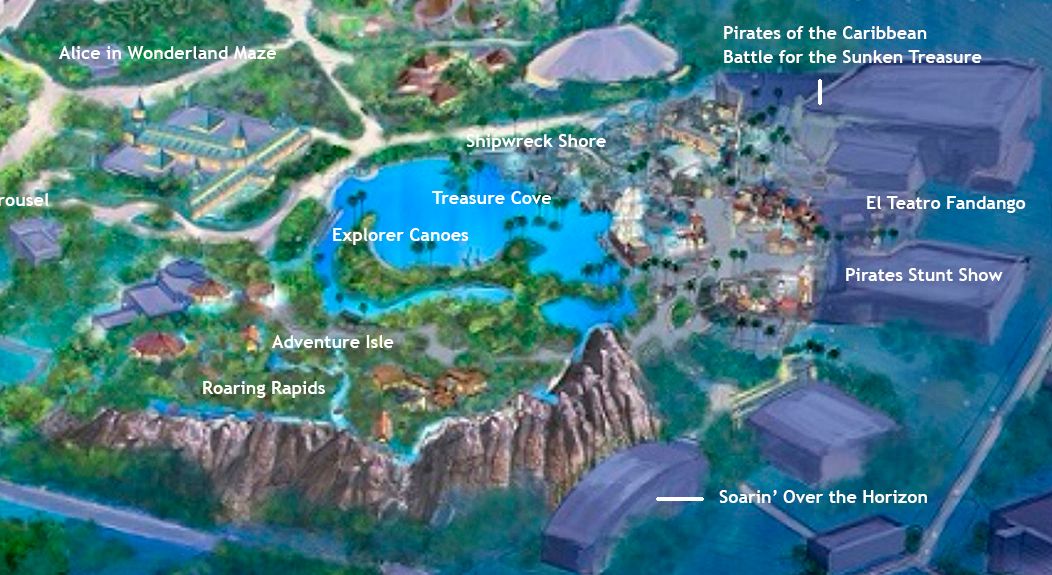 Alain, you glossed over some of the big shows that are forthcoming. The Westside Performance Venue, which belongs to the hub. Once Upon a Time Adventure is the big E-ticket stageshow that is in the upper corner of Fantasyland (It's not a castle walkthrough). Treasure Cove has the Eastside Performance Venue. Adventure land has the Storehouse Stage (the big venue beside Soarin').