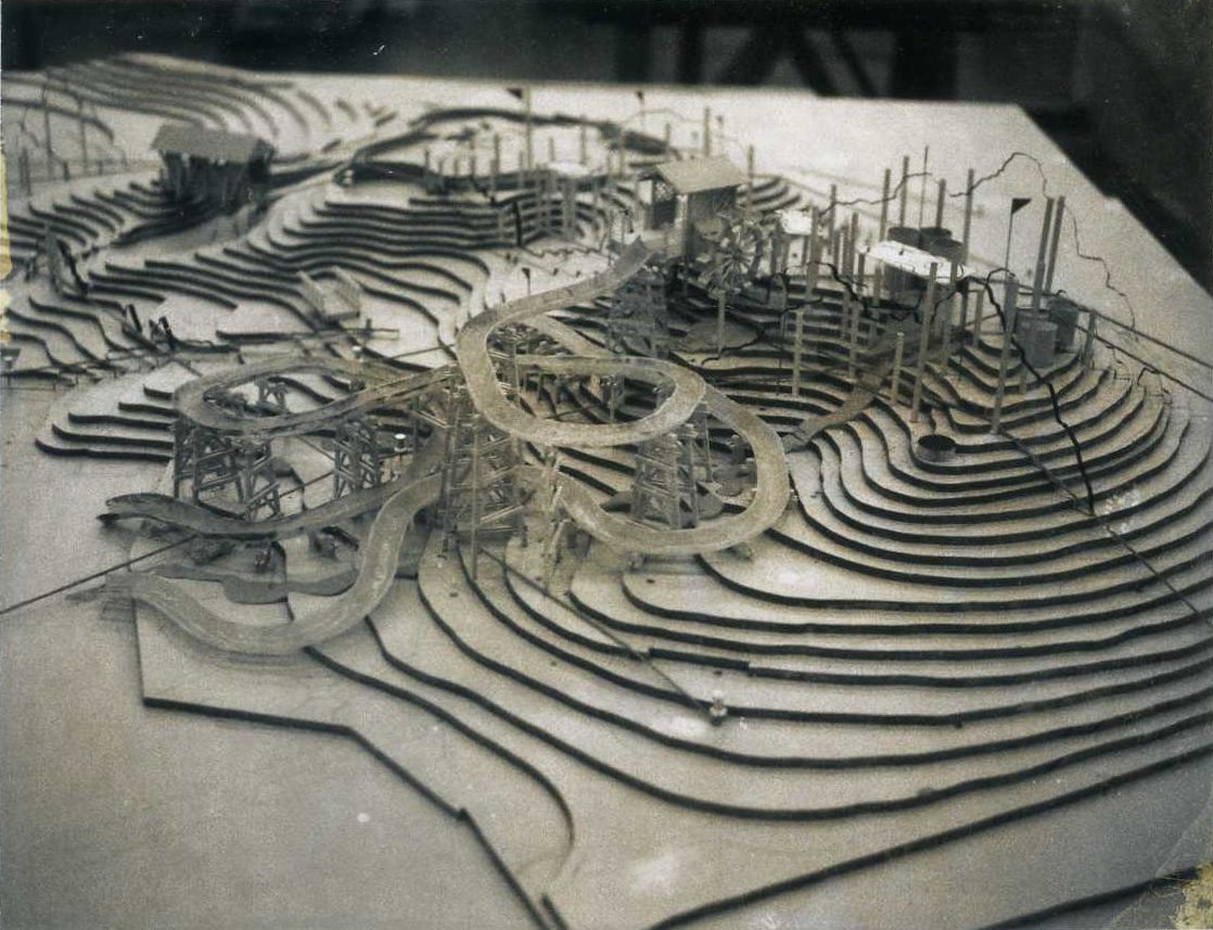 Pat also did a model for WDW 1st water park, River Country. Above and below, two never seen pictures of his River Country model with the elevated slides from about 1975 for WDW.