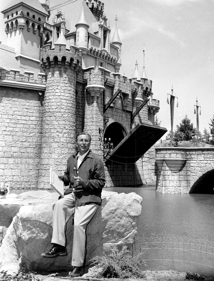 Above, Walt and his grand son in front of Disneyland Sleeping Beauty castle. Below, Walt at the Studios, circa 1930's.