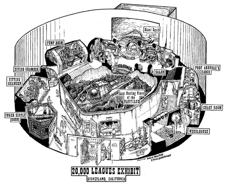 A great view of the park at night in its early days. Note the airship in the sky with the Renault logo on it, which was there during opening days as Renault was the sponsor of the Discoveryland Visionarium attraction.