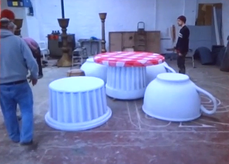 Once finished, they started to build the full scale - giant size show elements. I remind you that guests will be "reduced" at the size of a rat during the ride...