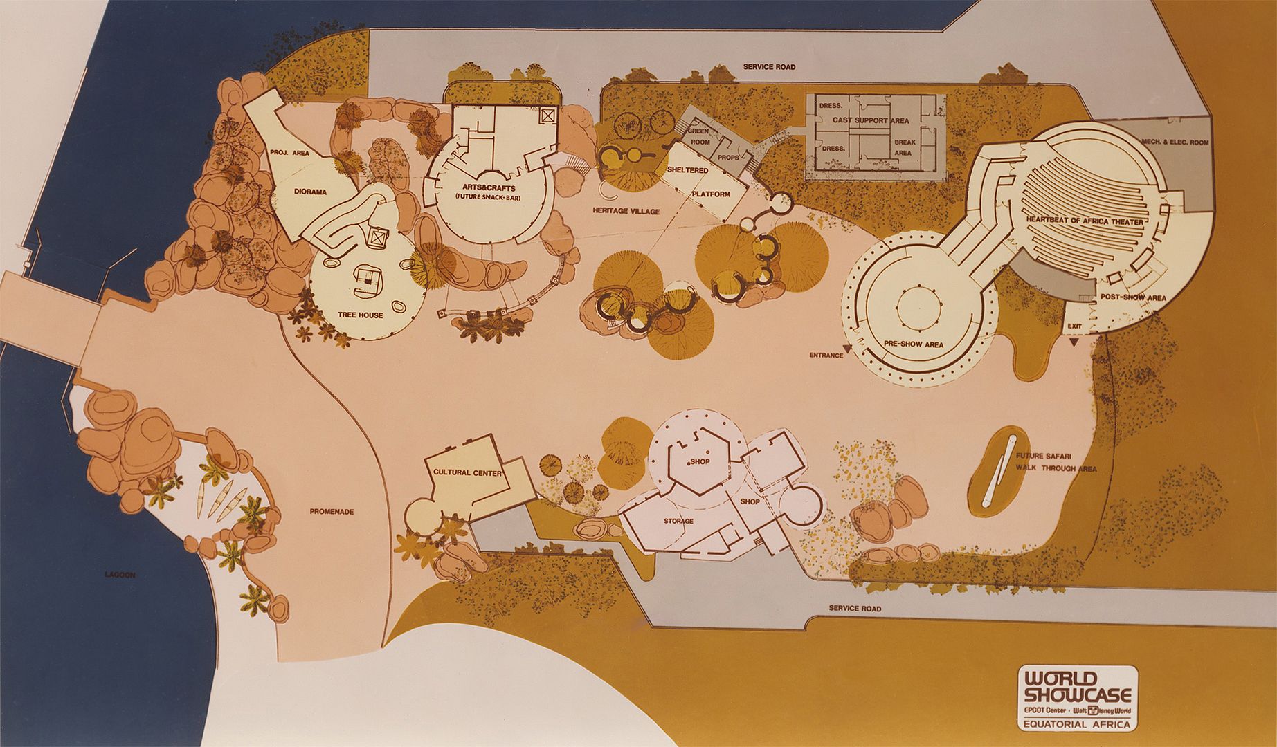 According to Imagineer Ken Anderson original presentation: "The Heartbeat of Africa show will open as a standard 70mm projection on a section of the dome filling an area of 28' x 53' there are two themes to our show: the first is to present an image of what Africa is like today - the differences of its peoples, the contrasts of traditional with modern, an "african experience" that will give both insight and entertainment. The second theme is an exploration of the evolution of music which probably began, as man himself might have begun, in africa. Our title derives from the concept that everything has both visual as well as audible rhythms.