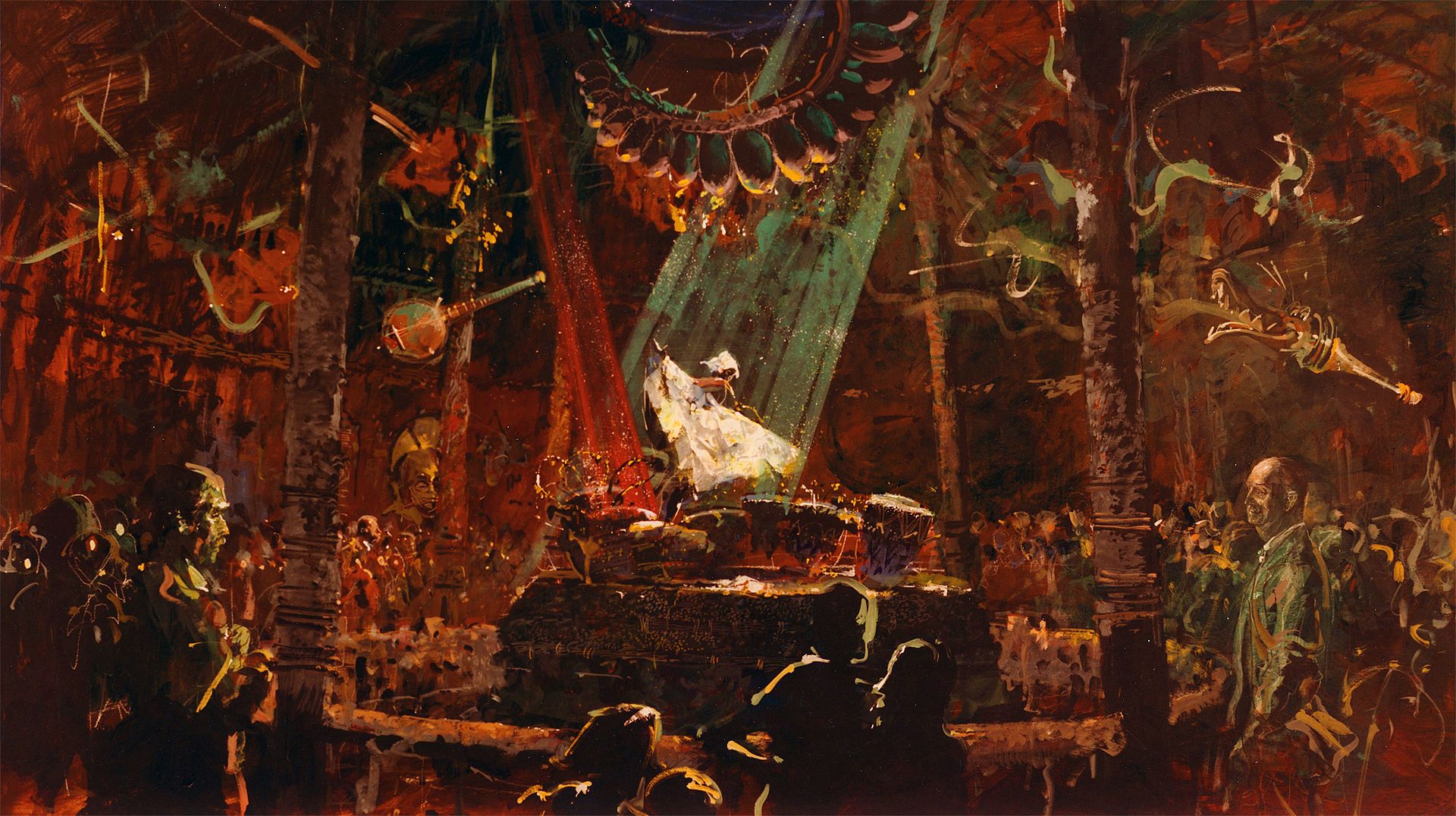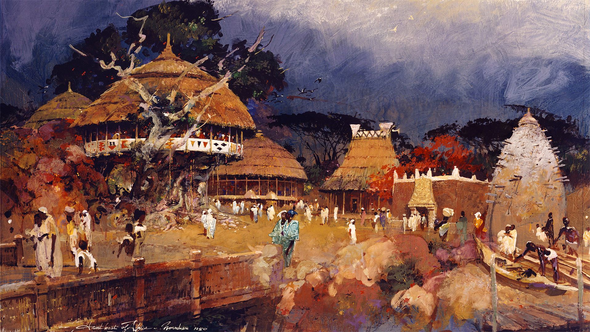 In this part two article about the "Epcot World Showcase Equatorial Africa Pavilion that never was" we will have a closer look on the "Heartbeat of Africa" show thanks to a great 2010 interview of Director and Cinematographer Jack Couffer coming from the Volume 12 of my friend Didier Ghez excellent book series "Walt's People" and the original Herb Ryman artwork for the show that you can see above, thanks to John Stanley Donaldson who is the author of a great book about Herb Ryman: "Warp and Weft".