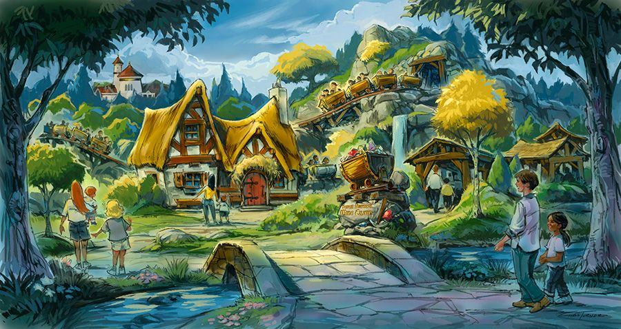 Asked about interactive queue elements, dave answered : "Yes, we do have some interactive elements in the queue. Part of the “scene one” in the queue area helps us start to tell the story. We have an area where guests can sort and wash jewels, and for the first time, we’re taking guests into the vault as seen in the classic film ‘Snow White.' The ride height restriction is 38 inches and Imagineers are on schedule for an opening on Spring!