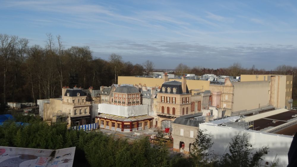 Okay, let's move to the WDS to have a look at the Ratatouille site... where most of the works now happen inside the show building, so invisible to our eyes. But there is still some works going on on the facades and the small fountain in the center of the plaza is still awaiting to be finished.