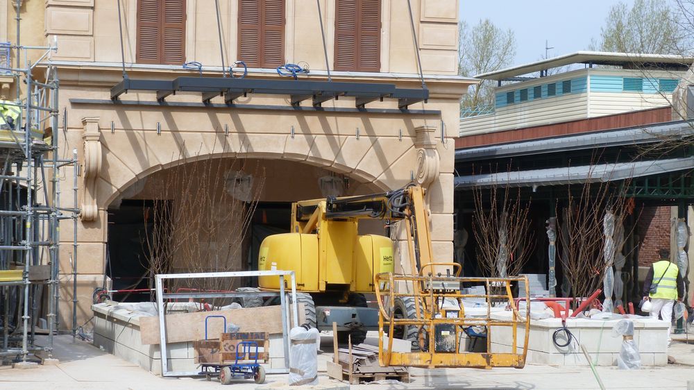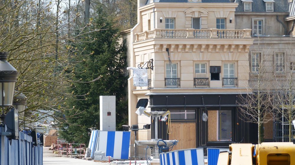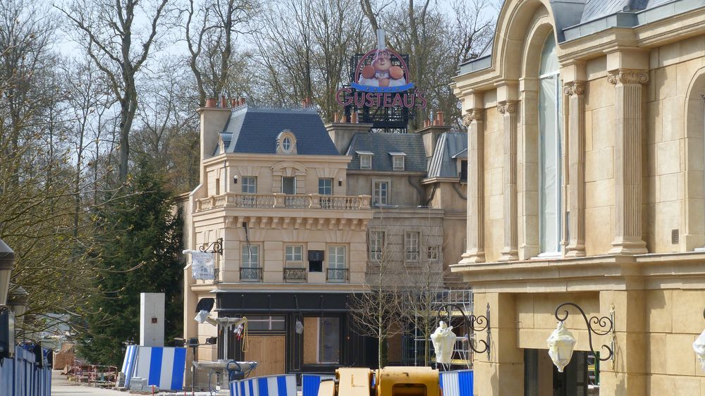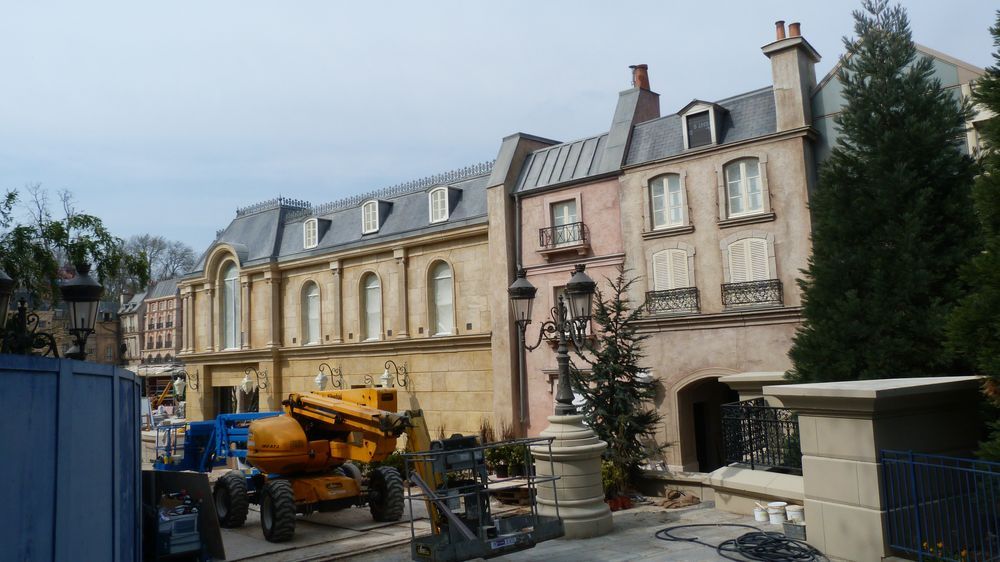 This Ratatouille mini-land will have a merchandise shop called "Chez Marianne" - the building on the left on the picture below - and recently new lights have been fixed on the walls outside as well as fresh painting on the facade.