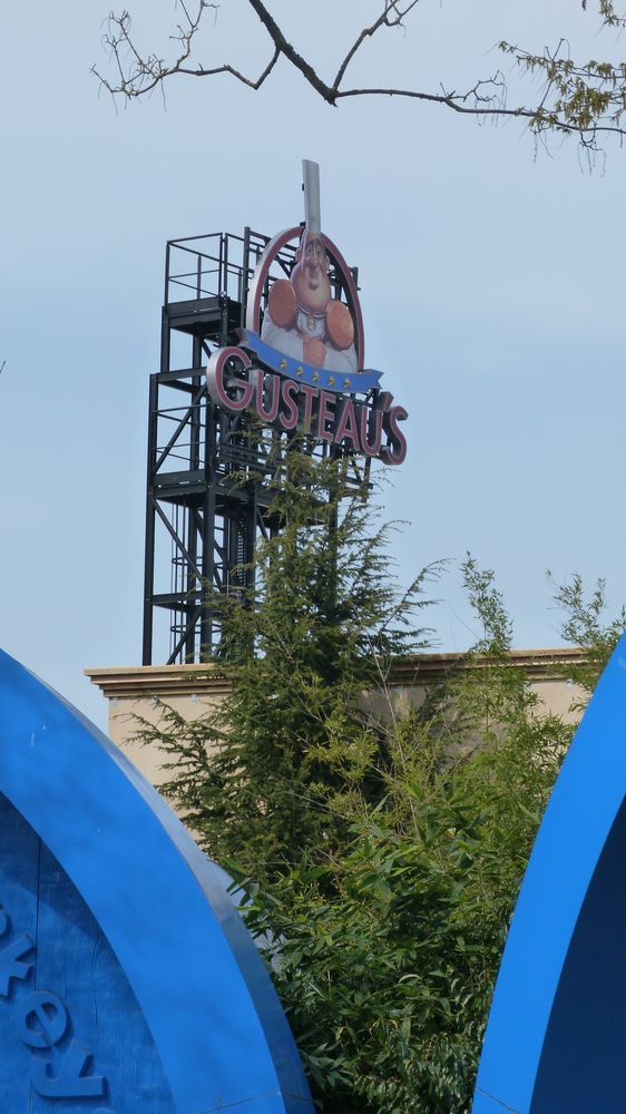 On the picture below, the Gusteau's sign structure shot from Toy Story Playland. Trees have been added too to hide the Toy Story Playland building nearby.