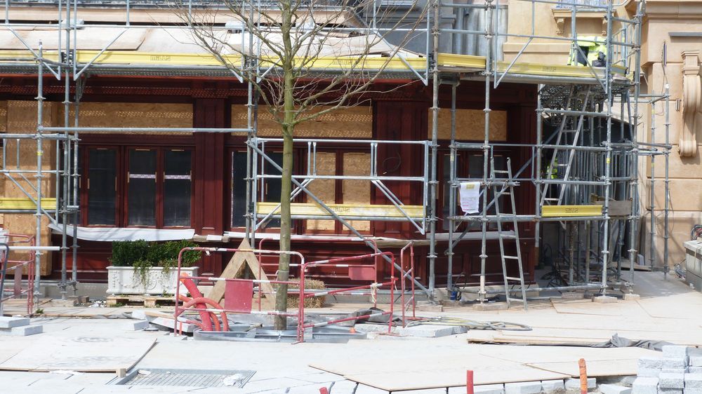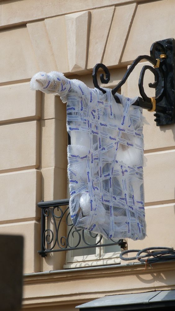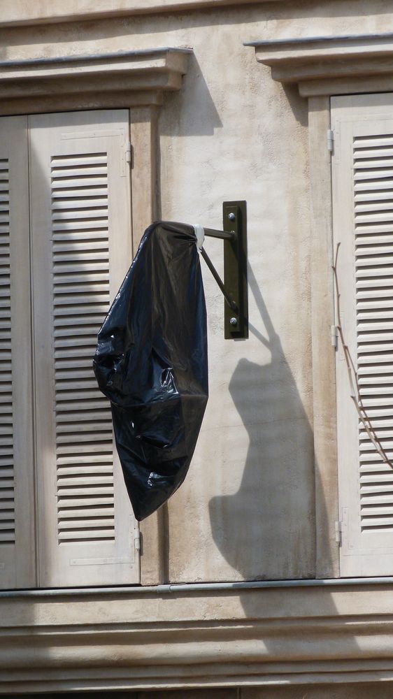 Close to the "Chez Remy" restaurant, a new outside lamp appeared and the "Chez Remy" sign has been wrapped for protection...