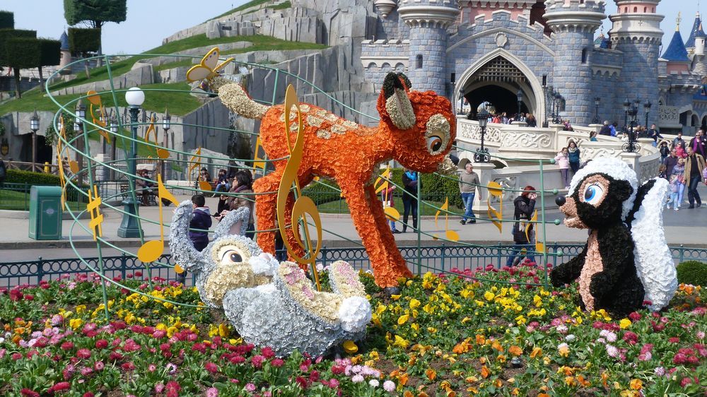 Always on Central Plaza, great topiaries of Bambi and his friends!