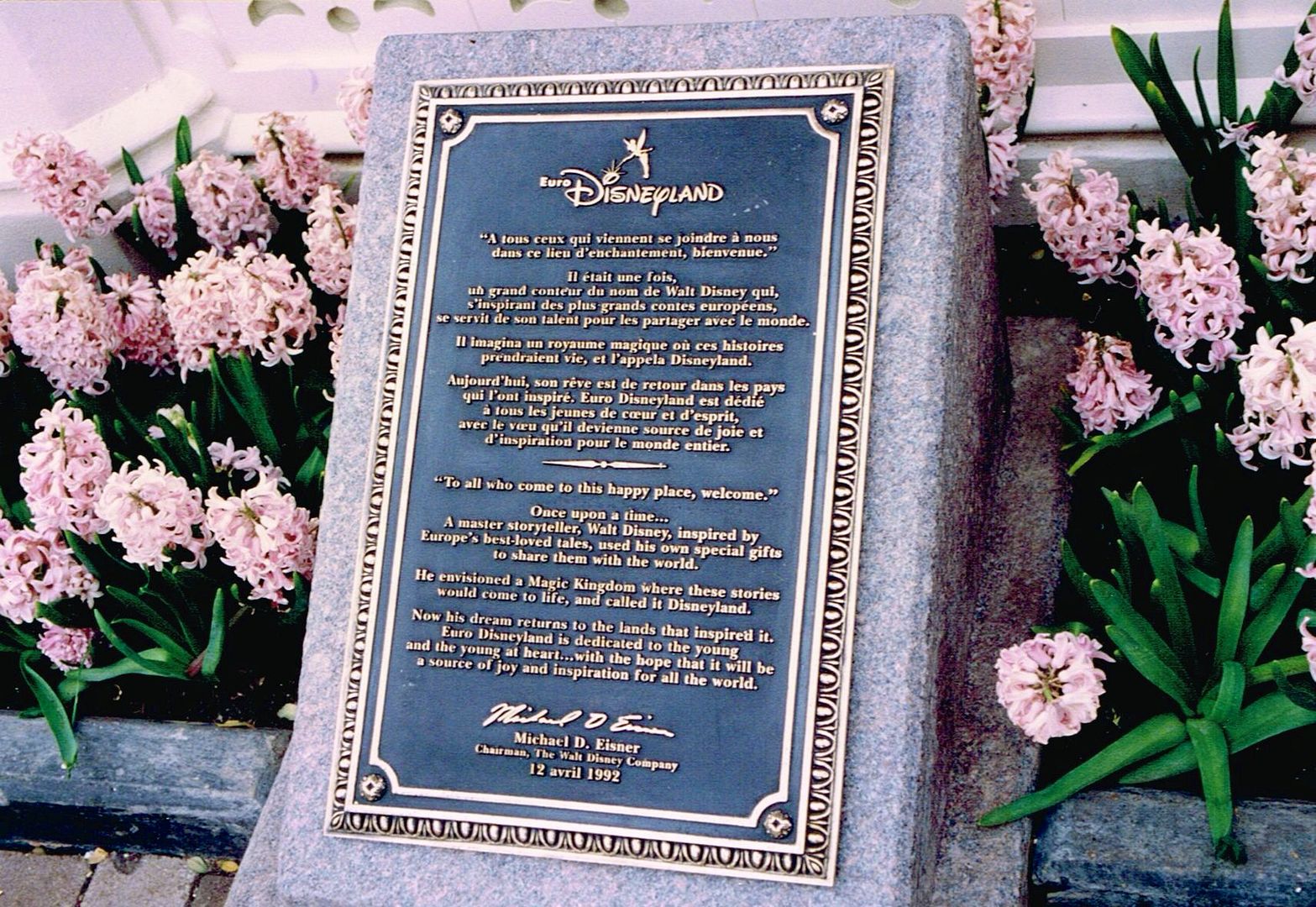 Disneyland Paris dedication plaque, on Town Square was unveiled that day .