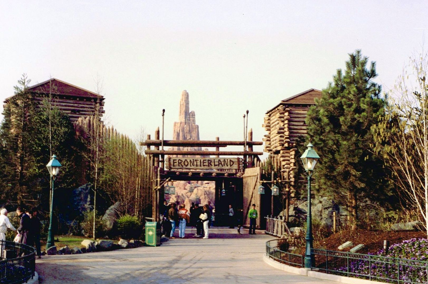 The entrance of DLP Frontierland with Fort Comstock, as shot on April 12 Opening Day.