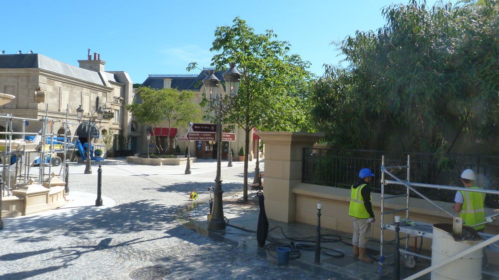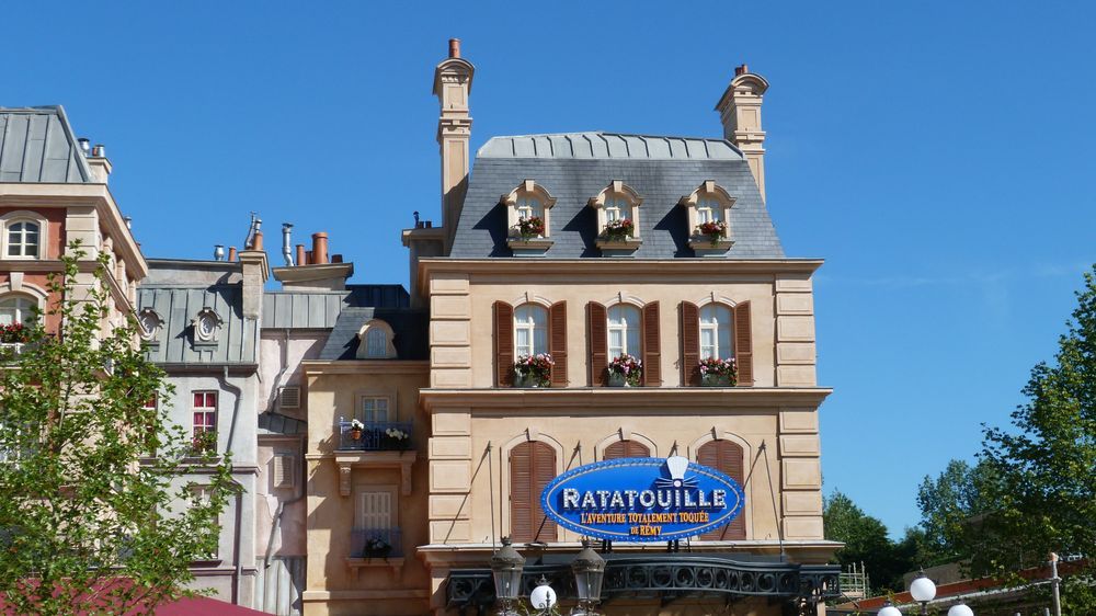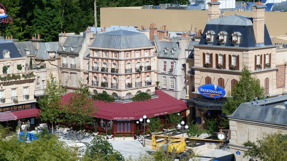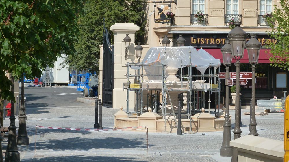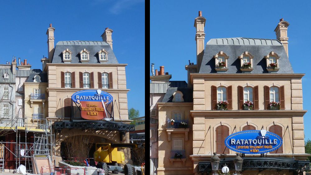 Here we go for a new Ratatouille pictorial update thanks as always to Max Fan, D&M contributor and DLPWelcome webmaster. As you'll see almost everything is ready for the press event which will happen on June 21 - 22. But the most important change of the day is definitely the new sign now in place at the entrance of the ride. Almost everyone agreed that the first one looked terrible with the big and awful cooking pot and it has been replaced by this new one that you can see on the pictures above and below. Also below a before / after picture.