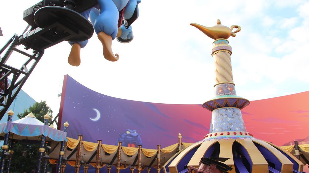 Let's move now to the Walt Disney Studios where a surprise awaits guests at the Aladdin Flying Carpet ride as a new background canvas was installed, showing the city of Agrabah.