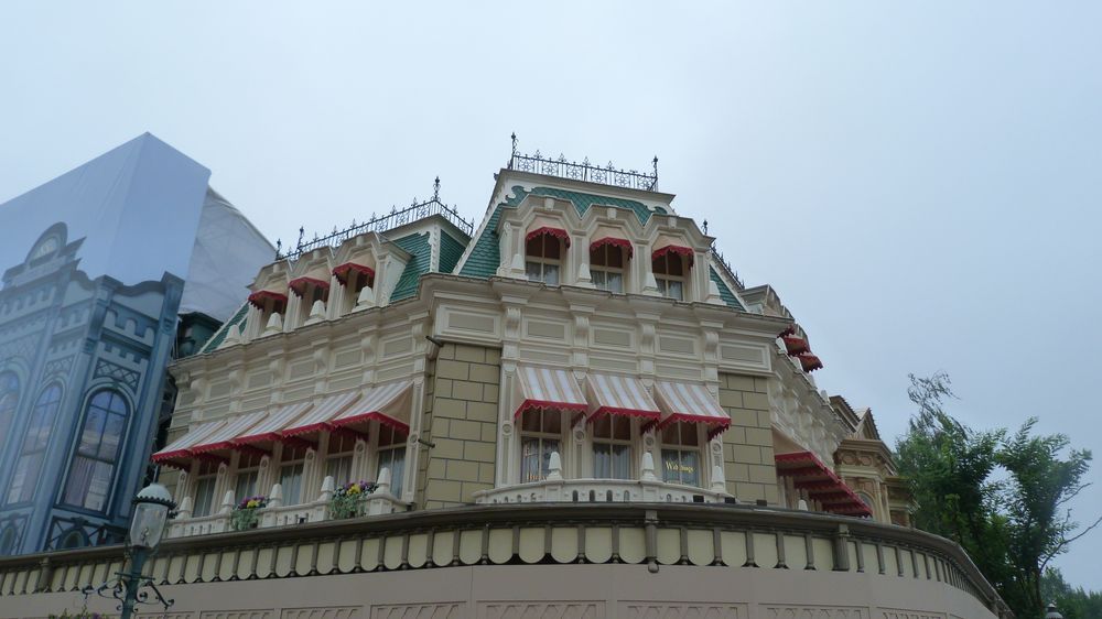 At Town Square the themed canvas are now in place on Main Street Transportation Co as well as on Boardwalk Candy palace facade, hiding the restoration works happening behind them. The transformation of Main Street Photography in the newly themed shop called "New Century Notions - Unique Flora's Boutique" are now over and it will open tomorrow August 1. New sun-blinds also appeared on the windows of the upper floors.