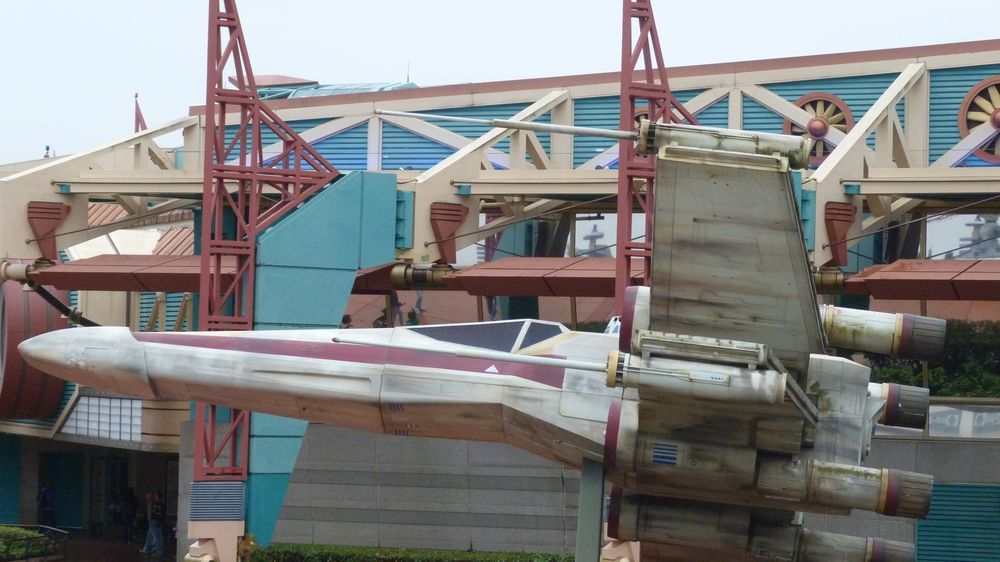 At Star Tours entrance the X_Wing fighter deserve a refurbishment as not only the painting gets old but moss is now also appearing...