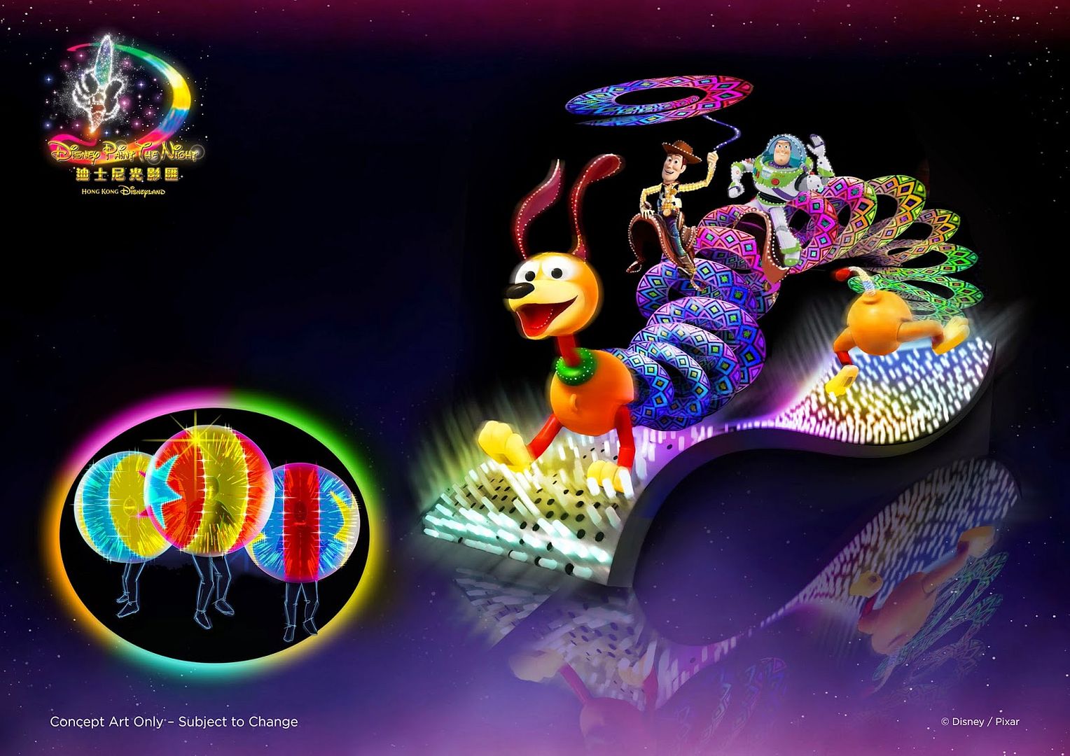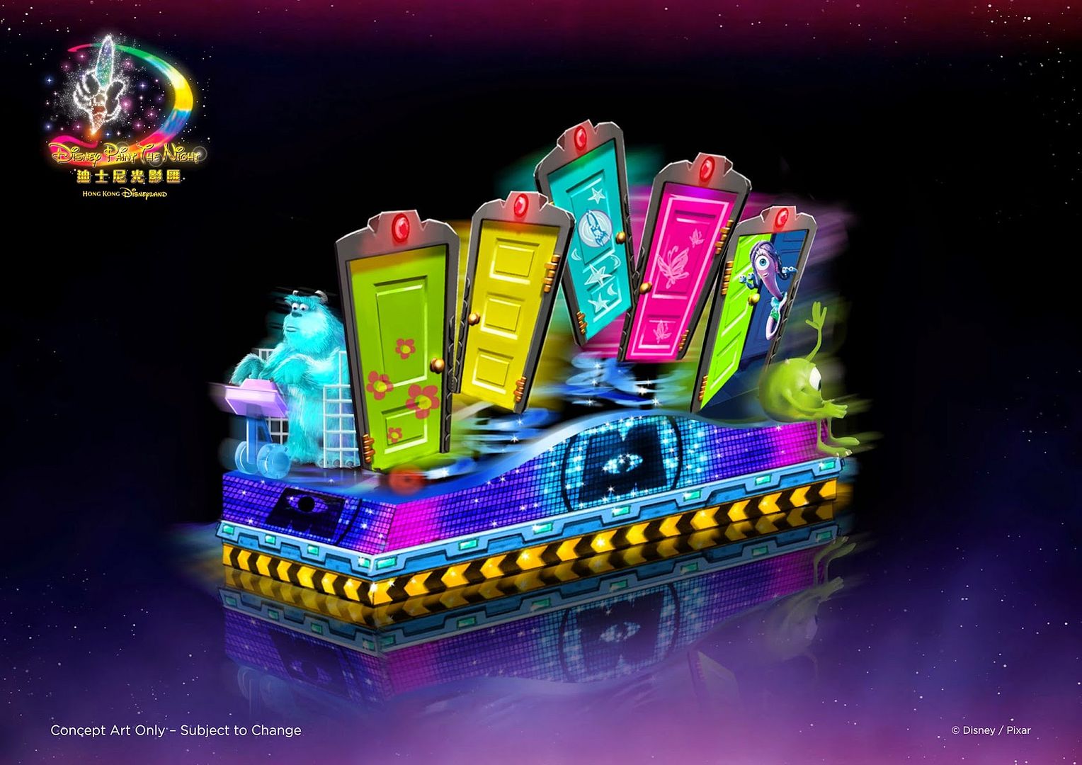 “Disney Paint the Night”, a first ever fully LED parade created by Walt Disney Parks and Resorts, is a state-of-the-art, vibrant wonder that immerses many of Disney classics and Pixar stories in magical, luminescent worlds. Disney Paint the Night features seven original floats containing over 740,000 individual lights. This fantastical parade will bring to life guests’ favorite Disney and Disney∙Pixar stories in unexpected and thrilling ways, illuminating the whole parade route every night.