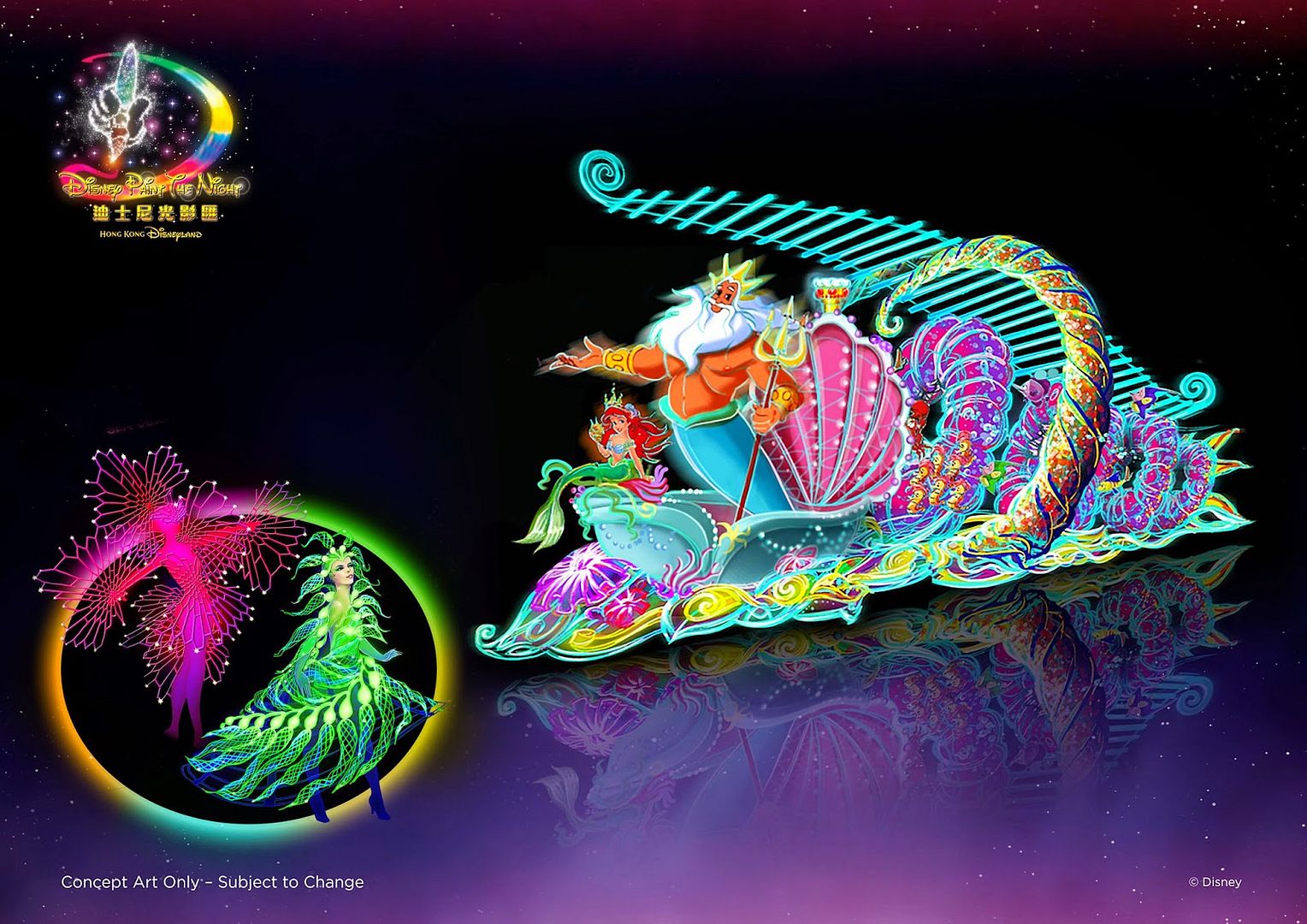 Hong Kong Disneyland will showcase a whole new light at nighttime this coming fall/winter as the brand new nighttime parade "Disney Paint the night" will start October 1st, and HKDL did a special presentation about it today, as well as about what's new in the upcoming Halloween season. Let's have a closer look at all this, and i also remind you that a parade of the same kind, if not identical, is rumored to come to Disneyland Anaheim for DL 50th Anniversary next year.